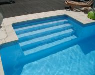 Gotowe schody do wszystkich basenów. Dostępne w pięciu kolorach. Białym, bezowym jasno niebieskim, zielonym morskimi, błękitnym.