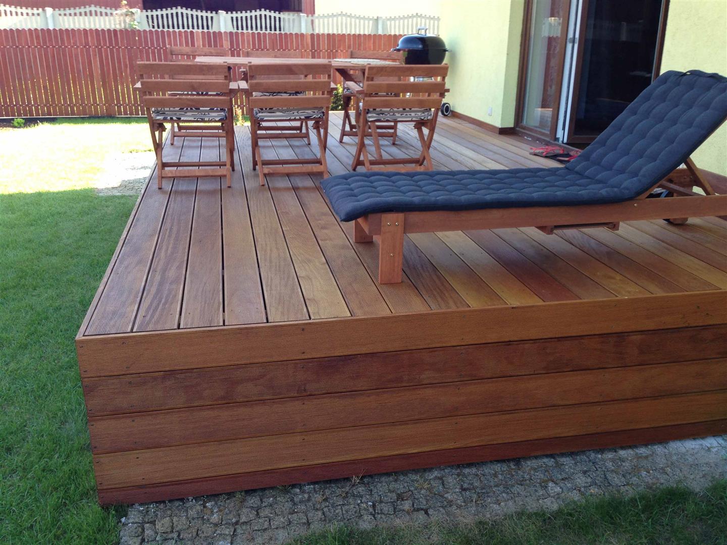 | Jatoba | Barwa będąca połączeniem wiśni i brązu, a także doskonała stabilność wymiarowa i duża gęstość sprawiają, że te deski doskonale sprawdzają się do wykonania tarasu drewnianego. |